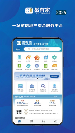 邕有家App凭借其官方支持建设的权威背景、深厚的行业协作经验与先进的涉房类大数据运营研究能力,成功打造了一个集权威信息发布、细致项目展示、智能决策辅助与便民服务办理于一体的房地产综合服务平台。它不仅是南宁市房地产行业信息化、细致化、智能化发展的标志性成果,更是市民安居乐业的数字助手。从查询精准的项目信息到了解权威的房产政策,从使用便捷的便民服务到获取深度的大数据洞察,邕有家App始终秉持“房住不炒”的理念,以数据驱动服务,以科技赋能决策,致力于让每一位邕城市民在“筑家”路上,都能感受到官方平台的可靠与温暖,真正实现“邕城安居,有家可依”的美好愿景。