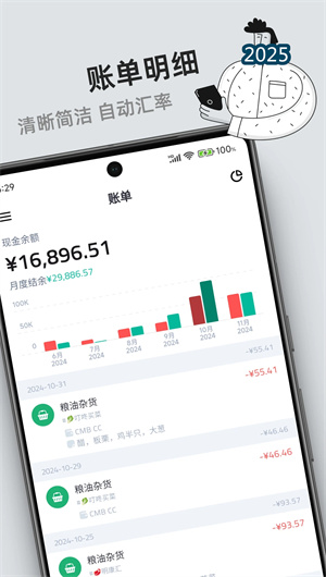 钱往APP的显著特色在于其出色的多币种管理能力。软件原生支持超过 70种 全球主流及地区性货币,满足海外留学、工作、旅行及拥有跨境投资用户的复杂需求。用户可以为不同国家/地区的银行账户、投资账户分别设定基准货币。在记账或录入资产时,只需输入原始币种金额,系统内置的实时汇率接口将自动根据交易发生日或当前的最新汇率,进行汇率换算,并以用户设定的主币种统一展示总资产价值。所有汇率转换记录清晰可查,并可生成外币资产波动报告,帮助用户精准把握汇率变动对个人净资产的影响,实现真正的全球视野资产管理。