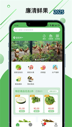 廉清APP的核心功能是其商品丰富、分类清晰的全品类生鲜商城。商城首页根据用户偏好与季节变化,智能推荐当季热销水果、爆款生鲜及折扣生活用品。用户可按 “蔬菜专区”、 “水果集市”、 “肉禽蛋奶”、 “水产海鲜”、 “粮油调味” 及 “家居百货” 等精细化分类进行浏览选购。平台为每件商品提供高清实拍图、详细规格参数、溯源信息(如产地、批次)及用户真实评价。高效的 “智能购物车” 支持跨品类商品一键合并结算,自动计算商品总价、优惠折扣及预估运费,并可根据用户选择的履约方式(自提或配送)动态调整可下单时间与最终费用,实现流畅的一站式购物体验。