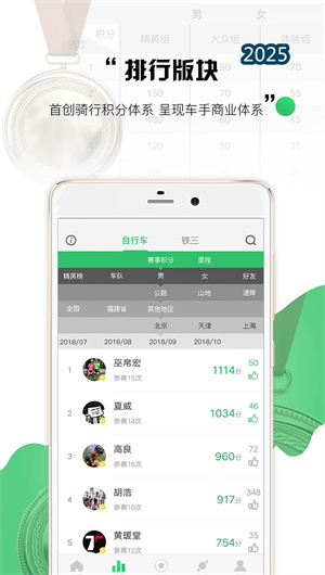 1. 动态积分算法系统建立科学的车手能力评估模型,根据赛事等级、参赛规模、完赛成绩等变量自动计算赛事积分值。算法区分完赛基础分、名次奖励分与赛事权重分三个维度,国家级A类赛事权重系数可达地区赛事的3倍。系统每24小时更新一次全国积分排行榜,按公路自行车、山地自行车、铁人三项等运动类别分别生成细分榜单,榜单支持按地区、年龄段、性别等多重条件筛选,真实反映车手的竞技水平与参赛活跃度。