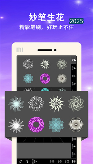 2. 动态笔刷管理系统提供了超过200种可自定义的专业笔刷,每款笔刷均包含压力感应曲线、流量抖动参数、纹理叠加样式等多维调节维度。用户可通过笔刷实验室功能自由组合这些参数,创建具有个人风格的独特笔刷,并保存至个人笔刷库。所有笔刷均针对曼达拉绘画优化,在快速旋转绘制时仍能保持边缘平滑抗锯齿,确保线条流畅美观,实现“一笔成画”的创作快感。
