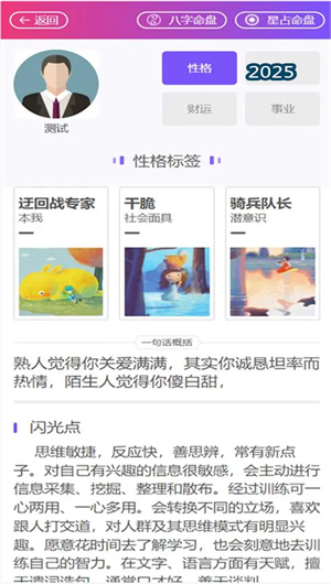 1. 人生阶段自适应解读模式系统能够识别用户当前所处的人生大运阶段与年龄区间,并动态调整分析报告的重点与表达方式。例如,对20岁的用户,报告会侧重学业、早期职业选择与自我探索;对40岁的用户,则会更多关注事业突破、家庭关系与中年养生。这使得分析建议更具针对性和现实指导意义。