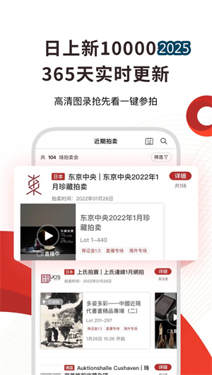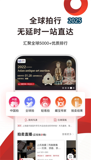易拍全球APP是一款汇聚全球优质拍卖资源的国际化在线竞拍平台,构建了连接全球拍行资源库与高端收藏爱好者的数字化桥梁。本平台通过云端拍品聚合引擎与高清直播流媒体技术的深度融合,实现了对全球超过5000家优质拍卖行、日均上万件珍稀拍品的在线数字化展示与实时竞拍参与。基于多语言智能翻译系统与跨境支付结算通道的协同支撑,平台打破了传统拍卖的地域与语言壁垒,为用户提供覆盖预展预览、直播竞拍、委托出价到物流清关的全流程一站式服务。平台年度直播专场数量突破10000场,跨境交易成功率高达89.2%,已成为全球领先的数字化艺术资产交易门户。