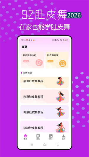 92肚皮舞APP的 “在家跟练系统” 是其最受欢迎的功能之一。系统提供了海量编排好的 “跟练课程套餐” ,每个套餐均包含高清多机位演示视频、清晰节拍口令与实时进度提示。用户可根据自身水平选择 “新手适应性跟练” 或 “高手强化性跟练” 。跟练过程中,APP的 “智能节拍同步器” 能确保视频指令与用户动作的实时匹配。更重要的是,用户的每一次跟练都会被 “个人舞蹈日志” 自动记录,形成可视化的 “技能成长曲线图” 与 “热力训练日历” ,帮助用户清晰看到自己的进步轨迹,科学规划后续练习。