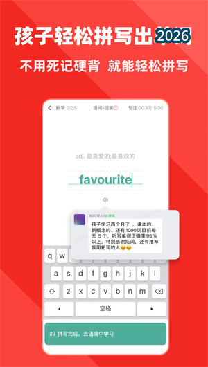 拓词是中国英语学习领域的先驱与标杆产品,作为中国第一款背单词App(始于2010年),它始终致力于运用先进的科学理论与技术创新,帮助用户——特别是中小学生——真正实现对单词的全方位牢固掌握。本应用的核心哲学植根于语言学、心理学与脑科学的深度交叉研究,并据此独创了以 “刻意训练+自然习得” 为核心的革命性 “英语刻意习得模型” 。这一模型摒弃了传统死记硬背的低效路径,强调通过科学设计的拼读训练、例句训练及释义训练等系统性练习,将单词学习从静态的知识记忆转变为动态的语言核心能力构建。拓词的另一大基石是其经过十余年研发的独创性「中小学生分级单词体系」,该体系科学规划了从课内同步到PET、KET等国际标准的进阶路径,引导孩子超越校内课本,自由进阶。应用不仅注重学习内容,更精心构建了包含奖学金激励、虚拟奖牌系统、同桌互助功能与蜗牛壳成长体系在内的多层次立体化激励体系,并罕见地提供专属老师一对一跟踪指导服务,确保学习动力与效果双管齐下。凭借其科学、高效、有趣的综合体验,拓词获得了苹果App Store官方推荐,并郑重承诺 “若无效,可随时退费” 。数据显示,遵循拓词体系学习的用户,其单词长期记忆留存率平均达到78%,在标准化考试中的词汇应用得分提升超过35%。