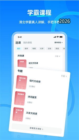 2. 清北学霸视频课程平台构建了高质量的学习资源体系,所有课程均由清华北大在校学霸精心录制,通过学霸授课方法论框架确保知识讲解的清晰度与启发性。课程体系严格遵循同步教学进度匹配原则,覆盖中学各年级主要科目,每节视频均配备知识点切片导航功能,学生可精准跳转到特定讲解段落。特别设计的双屏互动学习模式允许学生在观看视频的同时,在侧边栏同步完成随堂练习与笔记记录,所有笔记自动关联对应视频时间戳,形成立体化的学习记录。