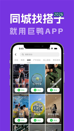 巨鸭APP是中国领先的以“活动即社交”为底层逻辑的年轻人线下组局破冰平台,专为“爱玩、会玩、放得开”的Z世代量身打造,以一键组局、活动计划同步、双向喜欢匹配为核心产品哲学,彻底终结微信群接龙效率低下、豆瓣同城信息过时、泛社交APP“聊死即沉”的组局痛点。作为新一代轻关系社交网络的破局者,巨鸭深度融合活动兴趣锚点雷达、即时组局双向确认引擎、同城活动计划聚合流与主被邀请动态博弈系统四大核心架构,将线下吃喝玩乐、运动户外、聚会游戏等一切“不想自己一个人”的场景,转化为可发布、可搜寻、可撮合、可成行的确定性社交资产。平台目前覆盖干饭、小酌、密室、剧本杀、飞盘、陆冲、露营、KTV、棋牌、Citywalk等37个活动类目,累计注册用户突破960万,月均组局发起量达230万场,单局成行平均耗时仅17分钟,活动成行率79%,通过组局成功扩列并发展为线下好友的用户占比63%,更有12%的用户在巨鸭上结识了稳定恋爱对象。我们坚信,当代年轻人的社交困境不是社恐,而是缺少一个让“我想去”和“他也想”同时发生的信号发射塔——巨鸭不生产有趣,只负责把散落在城市各处的有趣灵魂,在同一时间同一活动坐标下,拧成一场刚刚开始的欢聚。