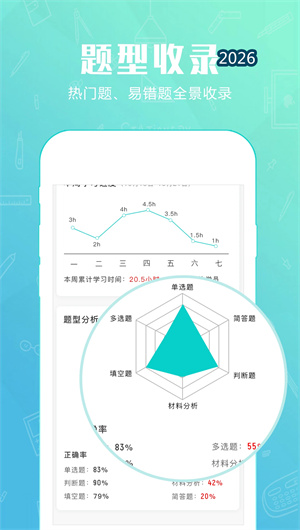 “才士题库”围绕用户从“学习”到“练习”再到“巩固”的备考全周期,构建了一套强大且科学的功能矩阵,让每一次刷题都卓有成效: