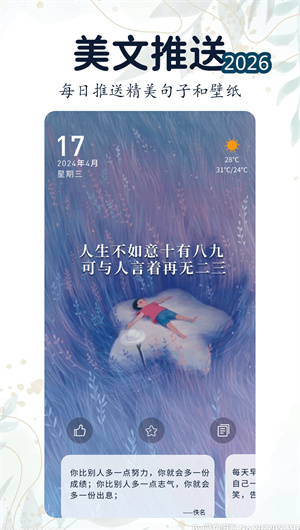 阅己APP每日精选9张极简摄影作品(留白构图/低饱和色调),由设计师为每幅图匹配一句最契合意境的句子。用户可左右滑动浏览当日图库,双击收藏心动组合。系统通过视觉-语义匹配算法确保图文情绪一致——冷色调配伤感句,暖光配励志句。该功能使用户日均停留时长达到7分钟,收藏率高达34%。