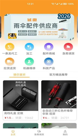 总之,伞城App以其对伞业产业链的深刻理解和对用户需求的全方位满足,为用户提供了一个集代生产、加工服务、配件采购、维修物流于一体的全产业链平台。它让代工更高效,让配件更好买,让货源不再难,让机器不停转。现在就加入伞城的伞业生态圈,开启你的智能伞业之旅——在这里,一条龙代生产省时省力,配件商城应有尽有,急需调货极速解决,机器维修一键上门。