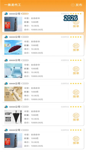 1. 一条龙代生产与供需对接: 伞城的核心功能之一是为伞业供需双方提供对接渠道。入驻平台后,公司或个人可发布订单,明确需求类型、数量、规格、工期等;代生产方接单后,为用户提供从原材料采购、加工生产到成品交付的一条龙代生产服务。这种模式替代了传统的分散对接,让需求方无需多头联系,让生产方无需空等订单,效率更高、成本更低、效果更优。平台还设有信誉评价体系,帮助双方筛选可靠伙伴,交易成功率提升45%。