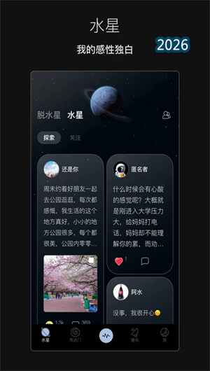 总之,脱水App以其对真实表达的坚守和对人性需求的深刻理解,为用户提供了一个集理性思考、感性记录、情绪连接于一体的独特精神空间。它让思考有处安放,让感性自由流淌,让同频的人相互看见。现在就加入脱水的300万用户行列,开启你的小宇宙之旅——在这里,脱水星上记录思考,水星里珍藏温柔,心情匹配遇见此刻同频的陌生人。