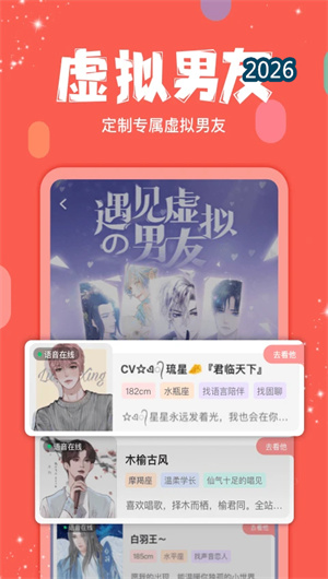 2. 虚拟男友哄睡叫早唱歌聊天: 克拉克拉的虚拟男友功能提供哄睡、叫早、唱歌、聊天等全方位暖心服务。深夜失眠时,有人用温柔的声音哄你入睡;清晨起床时,有人用元气的声音叫你起床;孤独无聊时,有人用动听的声音陪你聊天唱歌。这种全方位陪伴,让声音成为生活的温暖注脚。
