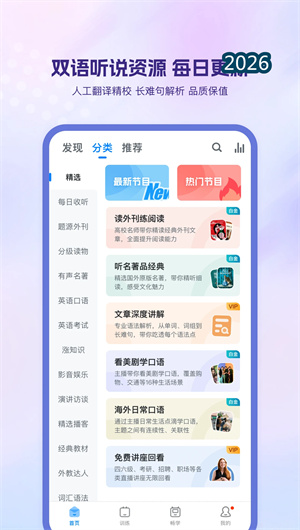可可英语是一款以听说能力为核心、以智能技术为特色的综合性英语学习平台。它深刻理解年轻学习者的核心痛点——开口难、听力弱、单词记不住、学习无趣味。因此,平台从“口语、听力、阅读、单词”四个维度构建了完整的英语学习生态。在口语层面,AI口语教练让你与智能AI随时随地练口语,多场景+语音打分+语法纠错,告别高价外教。在听力层面,视频精听采用4步法逐步精听,听力训练提供单句循环反复精听,九宫格游戏练听力,单句听写消灭听力死角。在阅读层面,外刊精读精选新鲜外刊资讯,主播带你精读看世界;名著精讲精选国外原版名著,带你精听细读。在单词层面,单词背诵提供真题例句+词频统计,支持自定义生词本,闯关打卡赚豆换礼品。可可英语不仅是学习工具,更是陪伴年轻人从“学英语”到“用英语”的全程伙伴。