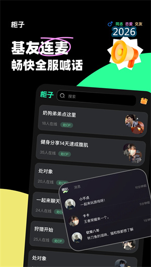 柜子语音是一款以语音社交为核心、以专属男生为特色的垂直社交平台。它深刻理解男性用户在社交中的核心痛点——想在纯粹的同性空间里交朋友、想通过声音寻找共鸣、想找到志同道合的CP。因此,平台从“语音、匹配、互动、表达”四个维度构建了完整的社交生态。在语音层面,语音房间每天上百场趣味活动,支持连麦互动。在匹配层面,寻找CP功能让相互喜欢的人成为CP后随时在线沟通。在互动层面,平台提供声控福利,用户可以寻找你的声音恋人,进行锁房畅聊。在表达层面,个性标签创造专属于你的个性名片,吸引他的注意;多种礼物喜欢他就为他打call;关系功能向全世界宣布你的爱。柜子语音不仅是社交工具,更是陪伴男生们寻找声音恋人、建立真挚关系的温暖空间。