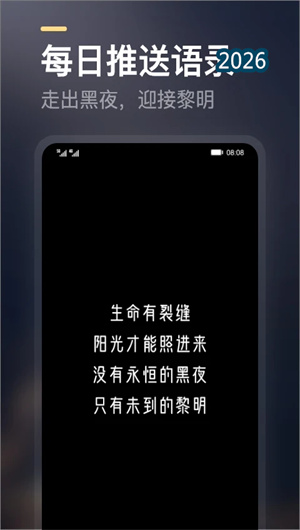 2. 每日一言与推送提醒:让温暖不期而至: 得言设有“每日一言”功能,每天为用户推送一条精选语录。用户可设置推送时间——清晨的早安语录开启元气满满的一天,午后的励志短句给工作注入动力,深夜的晚安语录伴用户入眠。推送内容根据用户的收藏偏好和阅读历史进行个性化推荐,确保每一条推送都能精准击中用户当下的需求。例如,经常阅读情感语录的用户,会收到更多关于爱情和友情的句子;经常浏览职场分类的用户,会看到更多关于事业和成长的智慧。这种“不期而遇的温暖”成为无数用户每天的小确幸,也让得言成为手机通知里最值得期待的消息。