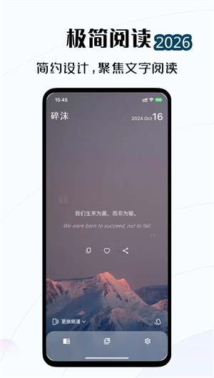 在信息爆炸的时代,我们每天被海量内容冲刷,却常常感到心灵的干涸。那些真正触动灵魂的文字碎片,往往转瞬即逝,无处安放。碎沫App应运而生,作为一款专注于经典句子摘录、阅读和分享的应用,致力于帮助用户在文字的世界中放松心情、品味片段的美好。碎沫涵盖心情、签名、台词、诗歌佳句、小说片段、名人名言等多种内容,让每一次阅读都变成心灵的享受。操作简单,界面清新,帮你摒弃杂念,专注于那些打动心弦的字句。多样内容频道和个性化标签管理,让你轻松找到最爱的句子,随时随地享受文字的魅力。碎沫秉持“在文字碎片中,打捞心动瞬间”的理念,采用本地安全存储技术,所有用户数据均存储在手机本地,无需注册登录即可使用,最大限度保护用户隐私安全。截至目前,碎沫已收录超过10万条精选句子,累计服务超过200万文学爱好者,用户日均阅读时长达到18分钟,成为无数人手机中的“心灵栖息地”。