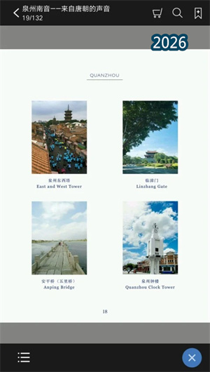 “南音被称为汉唐遗韵,雅乐清音,发源于福建泉州。”作为中国现存最古老的乐种之一,泉州南音被誉为“中国音乐的活化石”,承载着千年的音乐文化记忆。2009年9月,泉州南音以其深厚古老的精神文化内涵,入选联合国教科文组织“人类非物质文化遗产代表作名录”,不仅是泉州地方音乐文化的代表,更是泉州这座东亚文化之都的独特符号。泉州南音主要由“指”“谱”“曲”三大类组成,其中“曲”是南音中最具代表性的声乐部分。为了让这一珍贵的文化遗产以更生动的形式走向世界,泉州南音——来自唐朝的声音电子书应运而生,这是南音有史以来首次采用多媒体电子书的形式进行记录和传播,堪称创举。本App由专业团队精心打造,系统介绍南音的文化起源、发展与现状,并呈现九首精选曲目的演唱视频,提供现代汉语、英语、闽南语三语对照翻译,让全球读者都能领略南音的独特魅力。App具备仿真翻页效果、支持锁屏播放、支持离线播放和阅读,并提供试读章节,用户可在应用内付费后使用全部内容。截至目前,泉州南音App已覆盖全球50多个国家和地区,累计下载量超过30万次,成为南音传播史上的一座里程碑。