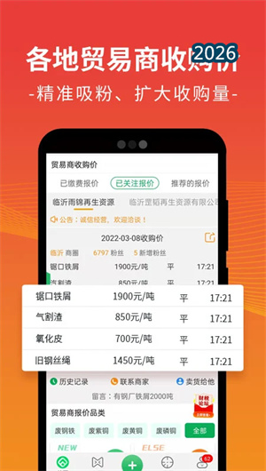 在再生资源行业,信息不对称长期困扰着贸易商、工厂、回收站和回收人员——哪里有好货?什么价合理?行情怎么走?这些问题往往靠经验和运气解决。废废App应运而生,作为一款涵盖全国32个省、50多个再生资源大品类的报价信息平台,致力于为国内再生资源行业从业者提供一站式信息服务。废废覆盖钢铁、有色金属、铝、铜、不锈钢、铝合金、钢材、家电、摩托车、电动车、锡、铅、锌、电子电器、电表、电瓶、变压器、磁石、塑料、纸、电缆、设备、再利用材等全品类废旧金属回收报价。平台推出七大“神器”——市场行情、企业报价、优质货源、线上交易、价格提醒、机械设备、知识宝库,为国内再生资源行业中的贸易商、工厂、废品回收站、回收人员提供全产业链资讯。废废建立了全新的再生产业链共享圈子,提供金属市场报价、货物交易资讯、优质货源信息、工厂采购讯息、每日行情分析、行业报告和产业分析等综合类信息服务。截至目前,废废已覆盖全国300多个城市,累计注册用户超过200万,日均报价查询量突破500万次,成为国内再生资源行业最具影响力的信息服务平台之一。