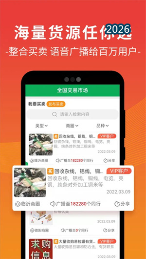 2. 优质货源与线上交易:推送附近寻货消息,买卖更高效: 废废的优质货源功能为用户推送附近的寻货消息和供货信息。用户可发布求购或供应信息,系统基于LBS定位智能匹配,将信息推送给周边潜在交易伙伴。例如,一家工厂需要处理一批废旧电缆,发布信息后,附近有需求的回收站会立即收到推送;一位回收人员手头有废旧电机,发布后可能被贸易商或拆解厂看到。线上交易功能支持实时发布买卖货和设备供求信息,系统可智能生成语音播报全网推送,让信息触达更多潜在买家。买卖双方可在平台内沟通、询价、议价,达成意向后可在线下完成交易。这种“信息撮合”模式,极大提升了废旧物资的流通效率,让“好货不愁卖,买家不愁找”。