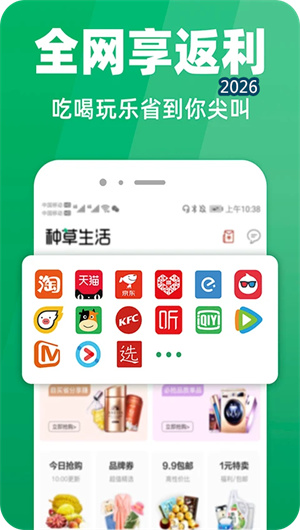 种草生活APP产品说明:官方优惠券返利与一键创业平台
