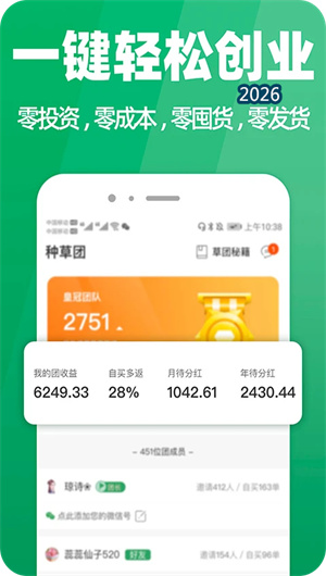 种草生活推出一键创业模式,用户加入种草团,可零投资、零成本、零门槛提现。团队经验丰富,适合宝妈、白领、大学生作为副业选择。分享好物给好友,好友下单即可获得返利,轻松赚取收益。该特色让97%的用户表示“边分享边赚钱,特别适合做副业”。