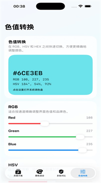 3、全场景预览与团队交付一体化:调色助手内置空间、海报、移动界面3大类、超过20种预设场景模板,用户可一键将配色方案应用到真实场景中预览,更直观地判断层次、节奏与视觉气质。色值转换支持RGB、HSV、HEX实时联动,任一数值修改其余自动更新,精度达小数点后2位,适合品牌色微调与交付前复核。方案导出功能支持生成包含色卡、对比数据、场景预览的“配色方案卡”与“对比总览报告”,可直接导出为PDF或图片格式,方便与设计、产品和前端团队共享评审。92%的团队管理者反馈“沟通效率提升明显,返工少多了”。