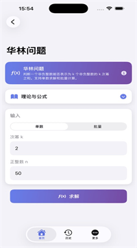 3、数学猜想探索与符号计算系统:平台提供素数分布密度分析工具,可计算任意区间内素数个数及分布密度,并对比π(x)与x/ln(x)的理论曲线,直观展示素数定理的逼近效果。华林问题模块可展示不同次幂下g(k)值的猜想值与计算值对比,帮助用户理解上界估计的演进过程。独创的“数论实验工坊”允许用户自定义输入,系统实时反馈计算与可视化结果,支持保存实验配置与导出高清图谱(300dpi),便于用于论文或教学材料。89%的用户反馈“可以自由探索,发现了许多教材上没有的规律”。