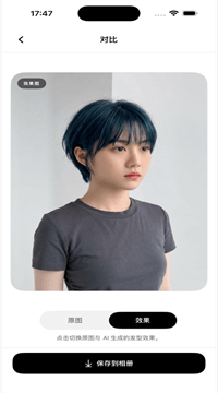 3、原图对比与效果保存,方便你慢慢挑:每次生成的效果图都可以一键保存到手机相册,App里也有专门的“我的造型”相册,所有试过的发型发色都留在那里,随时翻出来对比。更贴心的是,预览界面支持“原图vs效果图”一键切换,左滑右滑就能看出差别,那种“啊,果然还是这个更适合我”的感觉特别直观。据统计,使用原图对比功能超过3次的用户,最终选定的发型满意度比不用这个功能的用户高出35%。毕竟发型这种东西,犹豫一下很正常,把备选项都存下来慢慢看,总比剪完后悔强。