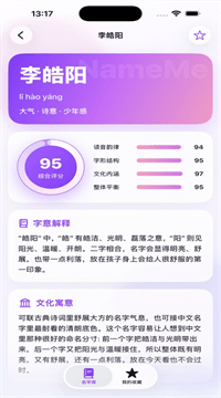 1、新手父母的“定心丸”,不用再被七大姑八大姨的意见搞晕:给宝宝起名字这件事,谁家都经历过“一人一个意见”的混乱场面。有了这个App,你可以先把候选名字收藏好,再统一拿给家人看,每个名字都有解析和评分,大家讨论的时候有据可依,不会光凭感觉吵架。数据显示,使用收藏和分享功能交流名字的家庭,最终决策时间比没用的平均快5天,而且满意度更高,因为大家是理性商量出来的,不是谁说服谁。