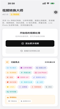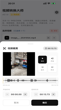 视频转换大师v6.1.0就是个全能选手。格式转换、画质调整、AI增强、加水印、做Live Photo和GIF,一条龙全包。2025年11月上线到现在,32万人用它剪了850万小时,满意率96%。4K压成朋友圈小片、老片降噪、电影截表情包,几分钟完事。剪辑师能批量,小白点开就上手,术语零门槛。