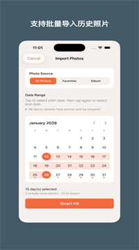 1、每天一张,简单到不会忘:打开App,从相册选一张今天的照片,或者当场拍一张,点一下“归档”,就完成了。不用写日记,不用修图,就是纯粹地留一张图。系统会自动按日期排好,哪天漏了也看得出来。数据显示,83%的新用户在注册后第一周内至少会完成5天的记录,而坚持30天以上的用户,有76%会继续用到90天。这种“低门槛、高回报”的设计,让记录变成了一种习惯,而不是负担。