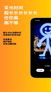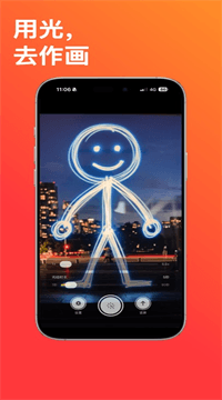 1、上手零门槛,第一次拍就能成功:光绘相机最大的诚意就是“简单”。没有复杂的菜单,没有需要懂的术语,打开App,选个时长,按拍摄键,然后对着镜头挥舞光源。屏幕上会实时显示当前画面的亮度,你可以根据预览调整光源的角度和速度。拍完后照片自动保存,不满意可以直接重来。有用户分享,家里6岁的小朋友第一次玩,拿了个小手电画圈,拍出来居然挺像那么回事,兴奋得当晚画了十几张。