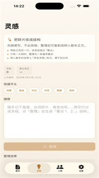 选中几个卡片或记录,点击“智能整理”,AI引擎在3秒内就能根据人物和逻辑关系,将它们自动串联成初步剧本大纲。这就像拥有一个超级助理,帮你把散落的拼图快速拼出轮廓。