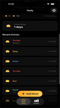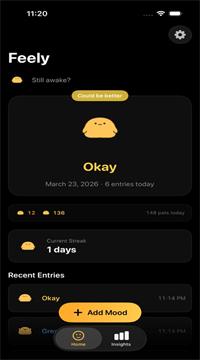 月历用颜色给每天打标签,哪周阳光灿烂、哪几天漆黑一目了然。周末自动生成小折线,像给心情做体检,高低起伏全在一条屏里。