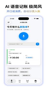 1、不用打字,不用学,打开就说:界面就一个大按钮,点一下说话,说完自动记。不会用的老人也能上手。很多用户说,给爸妈装了一个,他们现在也学会记账了,说“比拿本子记方便多了”。