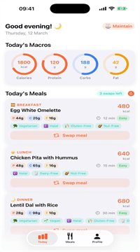 1、素食、纯素、无麸质、生酮等十二种饮食标签一键切换,菜单瞬间重写,配料表和做法同步替换,不用自己再淘配方。
