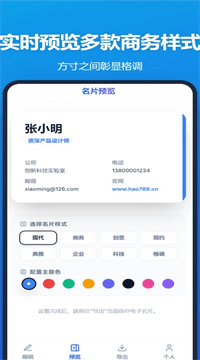 「电子名片制作APP」轻到没朋友,智能编辑、实时预览、多渠道导出全齐活,一次定制电子名片,个人商务全场景通吃,制作效率翻倍,分享顺手到飞起。