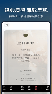 电子请柬是一款把婚礼、生日、商务邀约统统塞进手机里的请柬生成器,动动手指就能做出可以炫耀朋友圈的高颜值电子卡片。