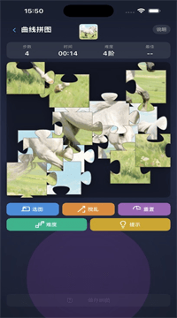 1、 在曲线拼图模式里,图片会被裁切成一块块带有真实凹凸边缘的拼图碎片,你得用拖拽的方式把它们放到正确的位置上,当碎片靠近正确位置时还会有那种爽快的吸附感,整个过程就像在玩一盒真实的纸质拼图,特别有手感。