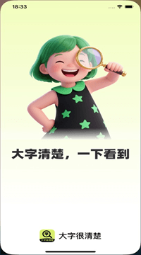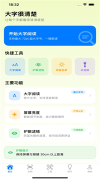 大字很清楚是一款专门为日常阅读和辅助需求打造的贴心小工具,它能帮你把文字放大到看得真真切切、把屏幕调到舒服不刺眼,还能用相机随手搞定识字、识物和扫码,界面简单得让长辈也能轻松上手。
