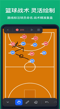 3、战术路线绘制与录制回放:用不同颜色的画笔在场上画出传球、跑动或防守路线,同时可以把整个操作过程录下来,之后随时回放、暂停或者拖进度条,慢慢讲解每一步。
