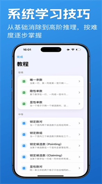 1、技巧教程从零搭体系:软件内置了一套按难度排序的技巧教程,从最基础的唯一余数、宫排除法,到进阶的X-Wing、数对占位,每个技巧都有示例和练习,让你像上课一样一步步建立起自己的解题思路。