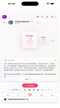 1、练前热身与手指训练:每次正式练琴前,软件会带你做一套科学的热身流程,包括爬格子、扫弦练习和快速换和弦,让手指活动开、不僵硬,既保护手指又能提高练习效率。