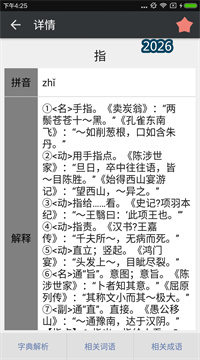 2、每字配现代汉语对照、经典例句、相关成语,点一下就能看《史记》《论语》原段。