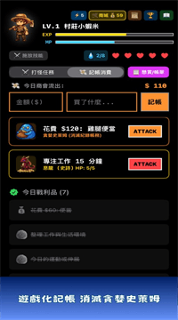 2、记账变成暴打贪婪史莱姆,每花一次钱就砍一剑,钱包止血还升级