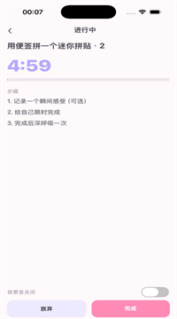 2、计时器自带“温柔压迫”:点开任务后倒数5分钟,前30秒屏幕亮度自动降成暖黄,背景白噪音悄悄响起,手机像在陪你一起专注;时间到没做完?系统不弹差评,只问“要不要加2分钟”,给足台阶,社恐用户也能安心点完成。