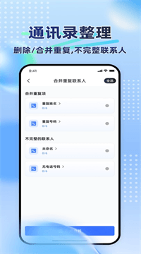 3、通讯录里同名同号自动标红,空号、错号也给你圈出来,合并删除点两下,联系人瞬间清爽。