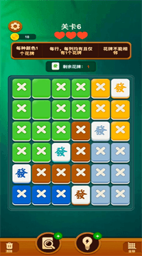 1、行列唯一规则硬核承袭数独:同一行、同一列、同一颜色宫只能出现一枚红中,用排除法可100%推导出唯一解,无随机无广告干扰