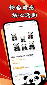 盼只代售是一款专门帮熊猫控淘正版周边的神器,从毛绒玩具到潮T手办全都有,挑货、比货、下单一步搞定,省心程度堪比叫外卖。